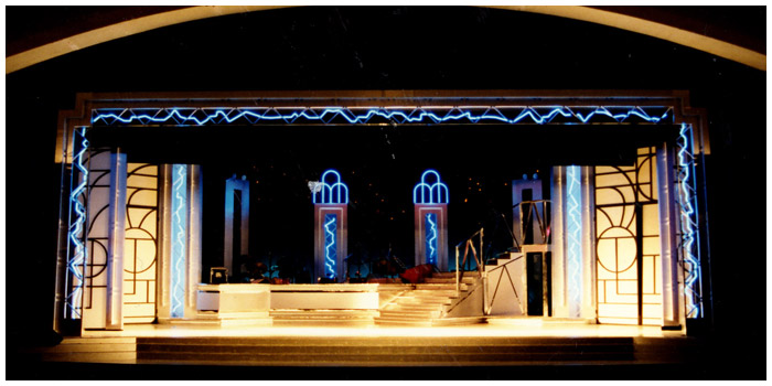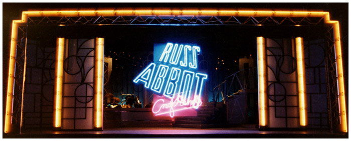 In 1987 I wrote a letter to Basil Soper asking if I could design his next summer show ... to my amazement he took a huge gamble on me and asked me to design what was to be one of the biggest summer shows in years. Russ Abbot was at the height of his TV career and this show was to be a no expense spared showcase of his live talents. This was my first Theater design job that directly led to BUDDY the Buddy Holly story. when producer Paul Elliott came to visit his friend Russ Abbot he saw my set and offered me Buddy on the spot.