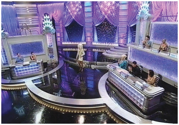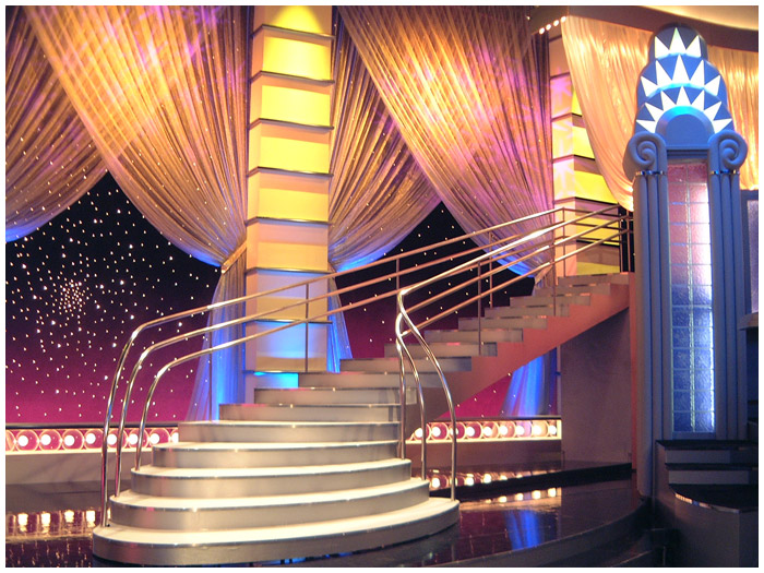 Known in the U.S. as the MATCH GAME , This show is one of those great institutions in British television . Celebrated for its awful tackiness but equally loved by the public for being so terrible. I got to design it twice for the BBC and then twice for ITV. The second set ( for itv ) was a glamorous homage to the classic Hollywood musical set designs..a perfect contradiction to the host ..drag queen lilly savage whos character is trailer park trash ..the clash worked perfectly.