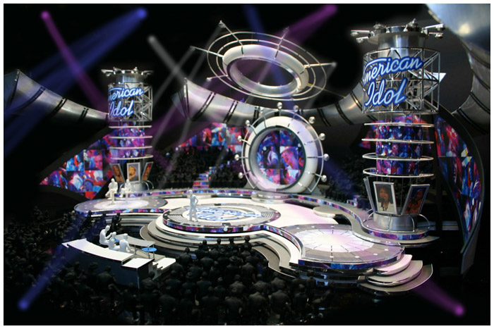 Having designed POP IDOL in the u.k. it was a natural transition for me to design the U.S. version re named AMERICAN IDOL.  10 years and 5 sets later the show became the single most succesful television show in US history. I am delighted that I was nominated three times for an Emmy and won for best scenic design the fourth time
