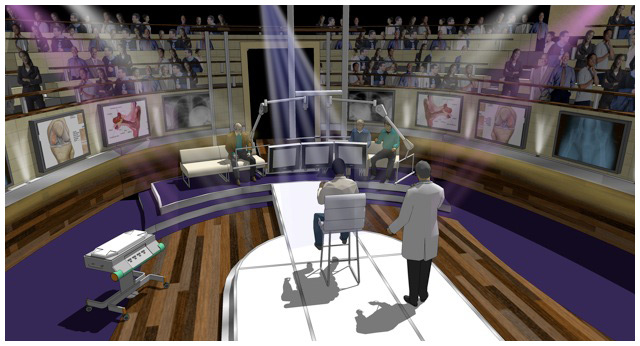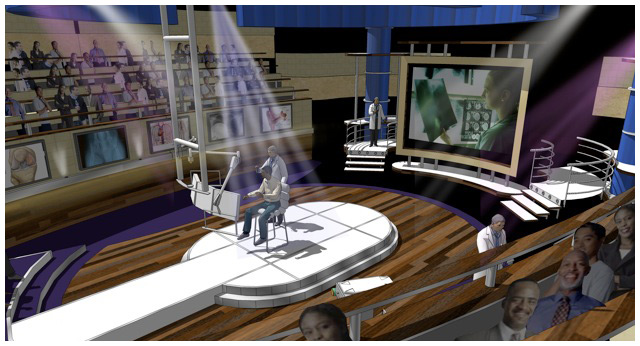 A new style of reality show meets informative medical show for Fox. I was given the task of reproducing a typical Victorian medical amphitheater, updating it to the 21st century and because of the sensitive content of the show not being too ' showbiz ' despite the show being in a prime time slot.