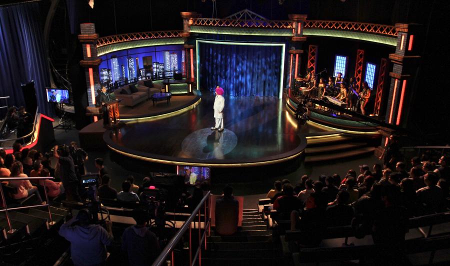 Famous Mexican comedian / clown Platanitos landed his first late night chat show and I designed a warehouse feel set for this new show that turned out to be a huge ratings hit in the Spanish market