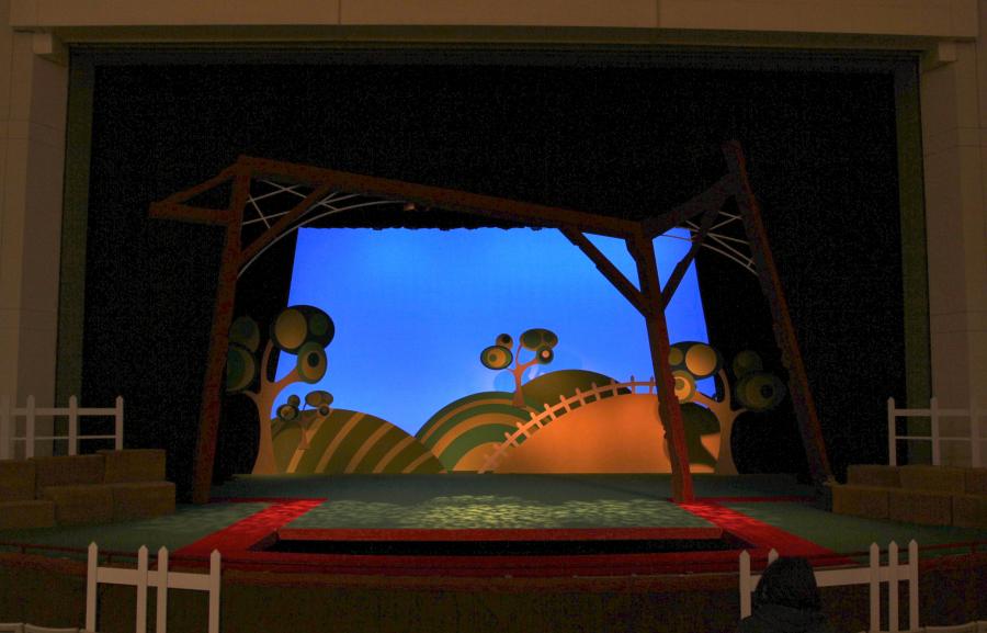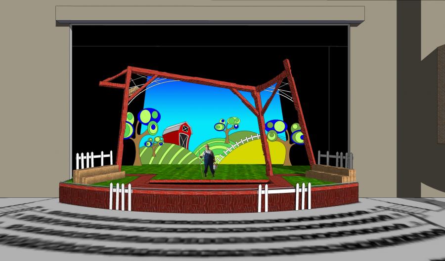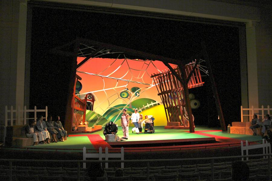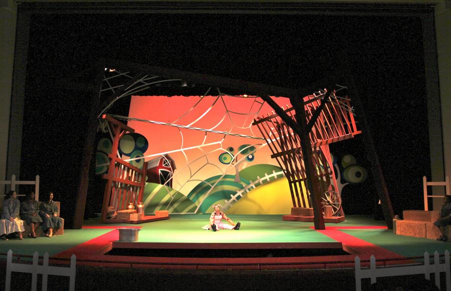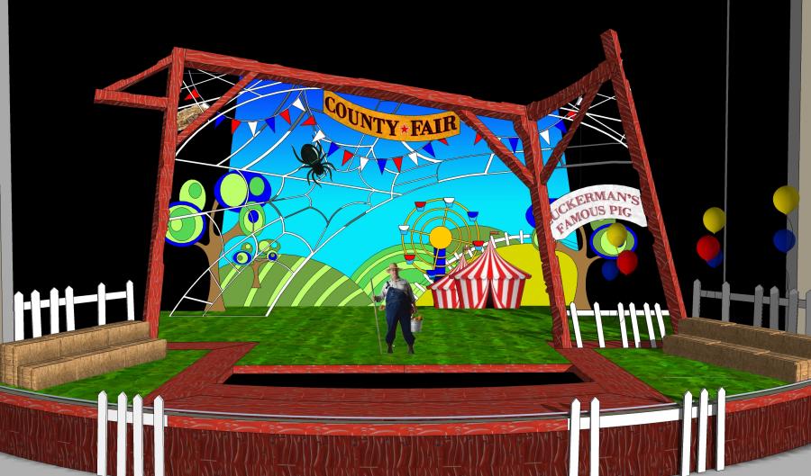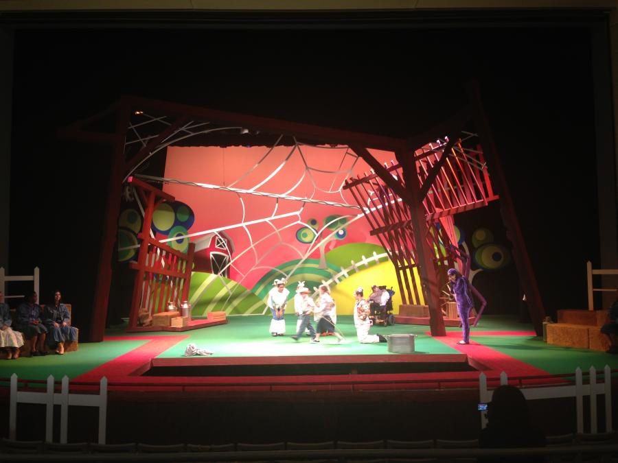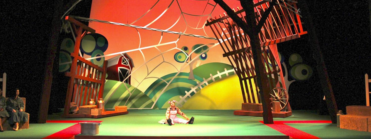 In the spring of 2013 I designed a children's musical version of the famous book Charlottes Web for the Las Vegas Shakespeare company. The show played in the enormous Henderson Pavilion . Starting as the sun set in this semi open air venue, this charming musical was a treat for the family audience and showcased a different style for me as I could create a whymsical cartoon world.