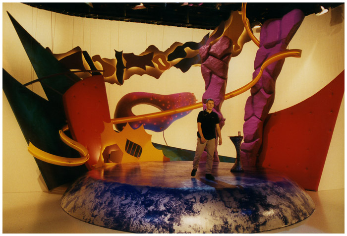 The set needed to be young and abstract to reflect patrick's style. Shot at fountain studios.