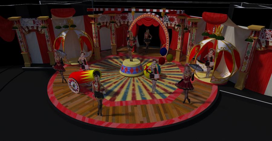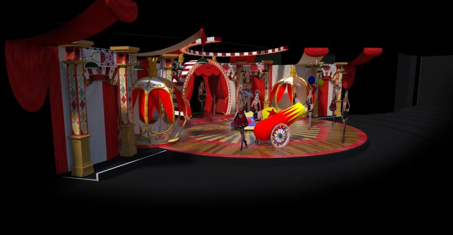 I have designed 32 production shows for Jean Ann Ryan, widely considered the best producer of Cruise ship shows. These shows can still be seen cruising the world on Norweigan cruise line, P & O cruise lines and Cunard cruise lines. Oceania Cruises Marina ship is home to this Circus themed show by jean Ann Ryan productions. Designed in 2013 this was a challenge due to the small stage and very low grid height