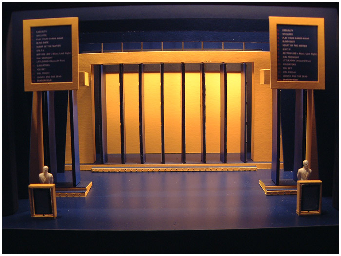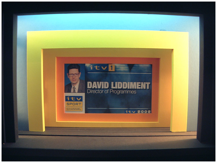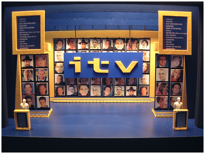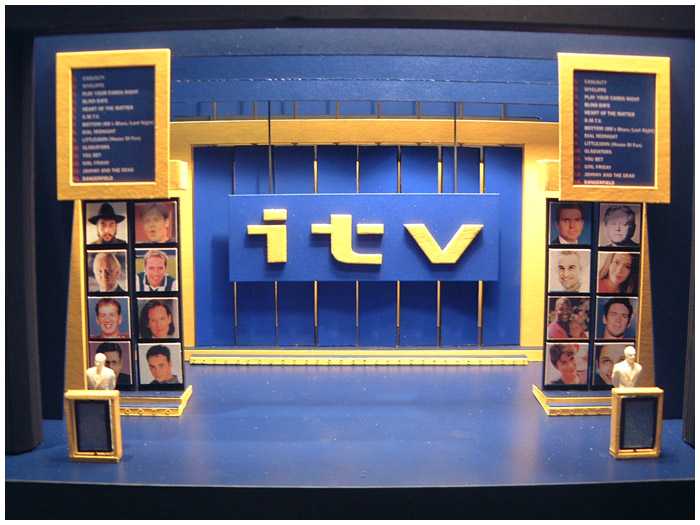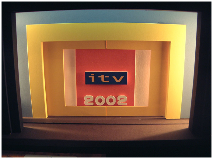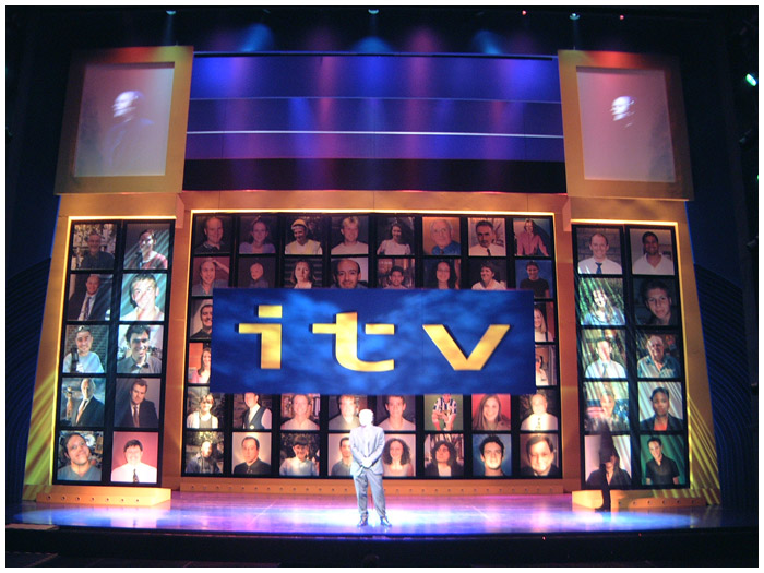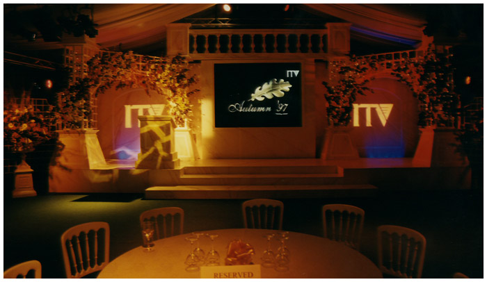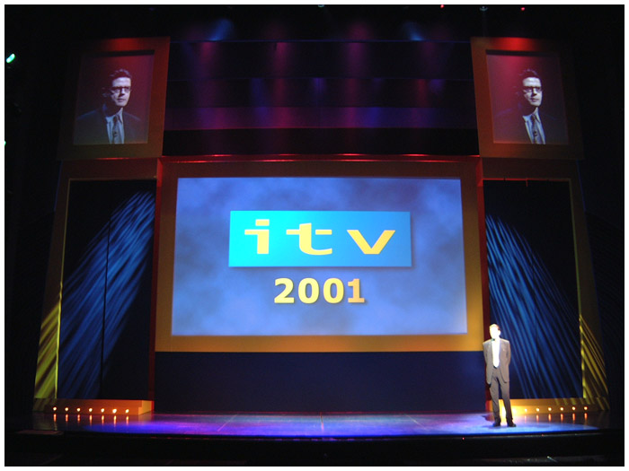 I designed six consecutive years of the ITV autumn schedule launch ( UP FRONTS ) in various West End theaters. The show was always a massive challenge as I was working directly with ITV network center executives and the show takes place on a Monday lunch time with access to the theater not possible until Saturday eve ... working around the clock on these shows was common practice.