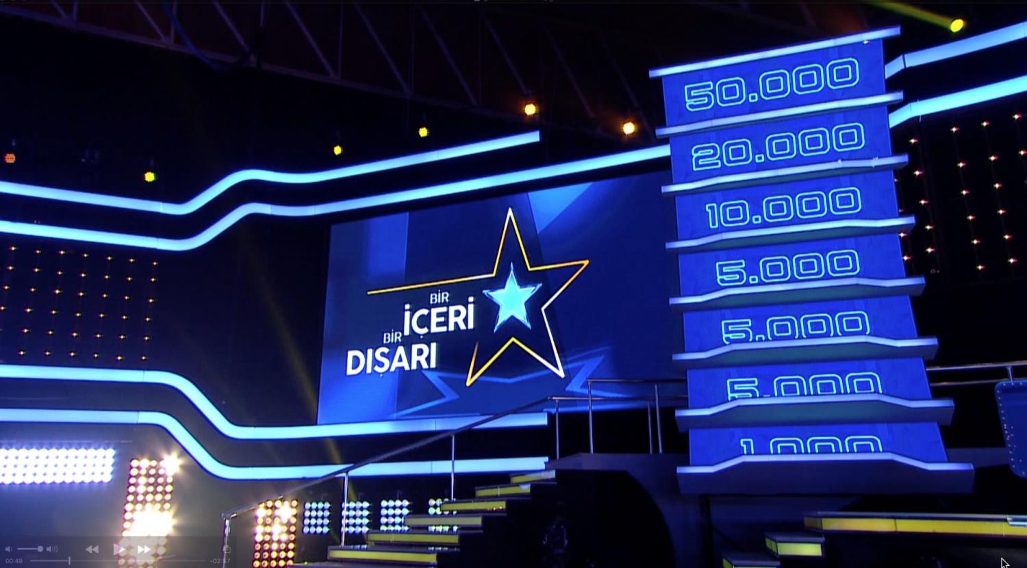 IN 2017 I DESIGNED A LARGE GAME SHOW FOR THE FOX NETWORK IN TURKEY CALLED IN AND OUT ( BIR ICERI BIR DISARI ) THE SHOW IS NOW IN THE PROCESS OF BEING SOLD WORLD WIDE AND PART OF MY BRIEF WAS TO DESIGN A SMALLER VERSION AND A LARGER SCALE VERSION THAT WILL BE REPRODUCED WORLD WIDE AS EACH TERRITORY BUYS THE FORMAT