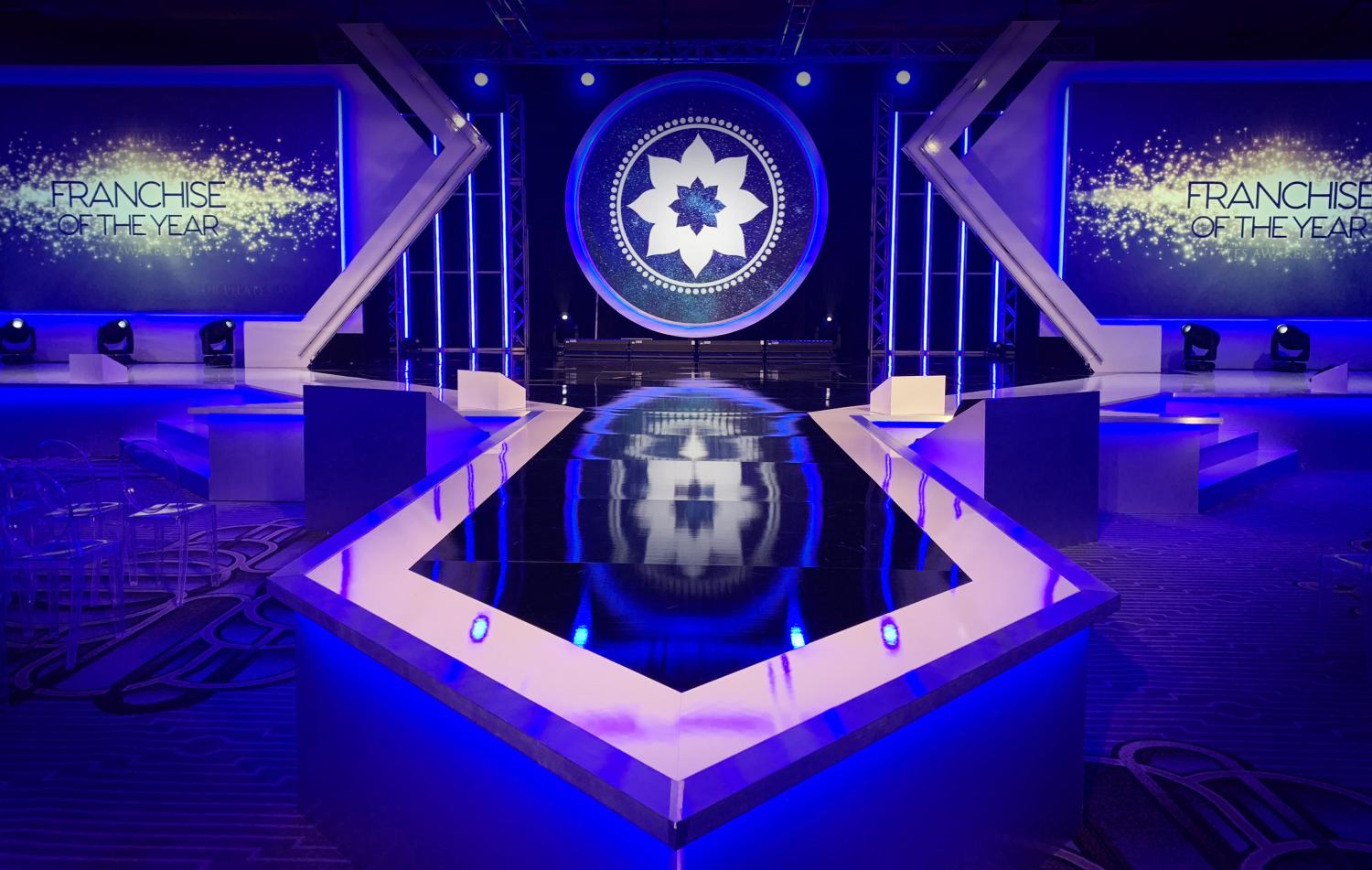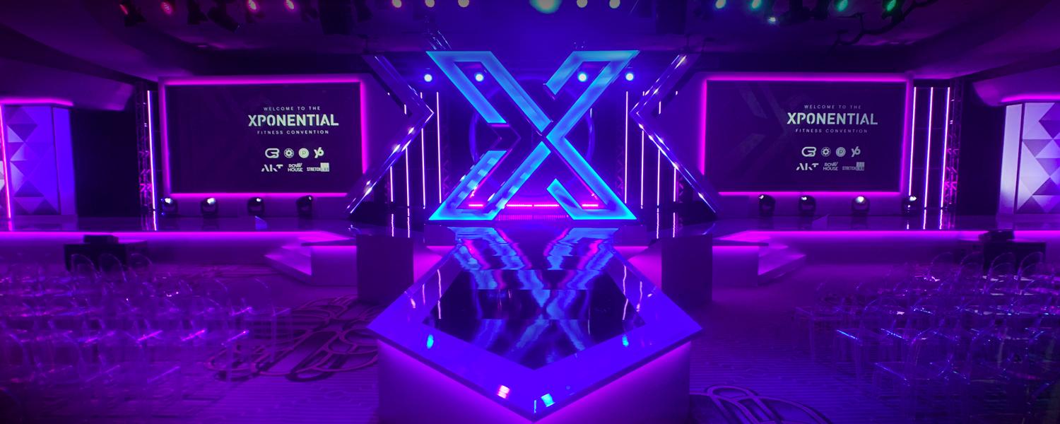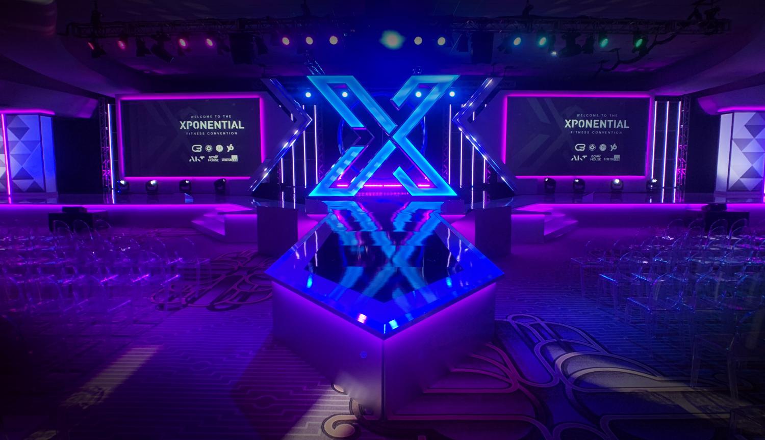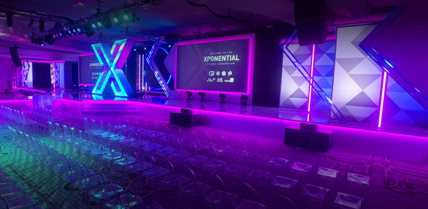 In 2018 I designed a huge corporate event for Fitness empire Xponential fitness working with Toast LA and the founder Anthony Geisler. We took over the Fontainbleau hotel on Miami beach with multiple meeting rooms and ballrooms being converted into meeting and event spaces.