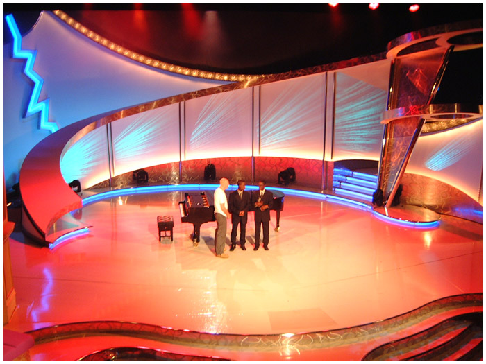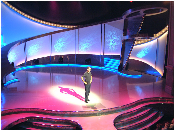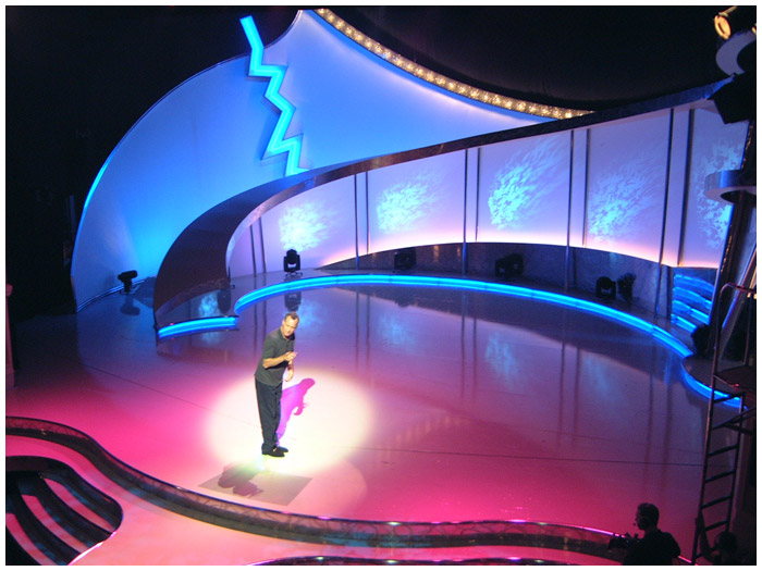 At the height of Michael Barrymore's fame we shot this series at the Wimbledon Theater. The set was designed to accommodate Michaels reputation for physically attacking the audience and so several catwalks, staircases etc where designed so that no member of the audience was safe.