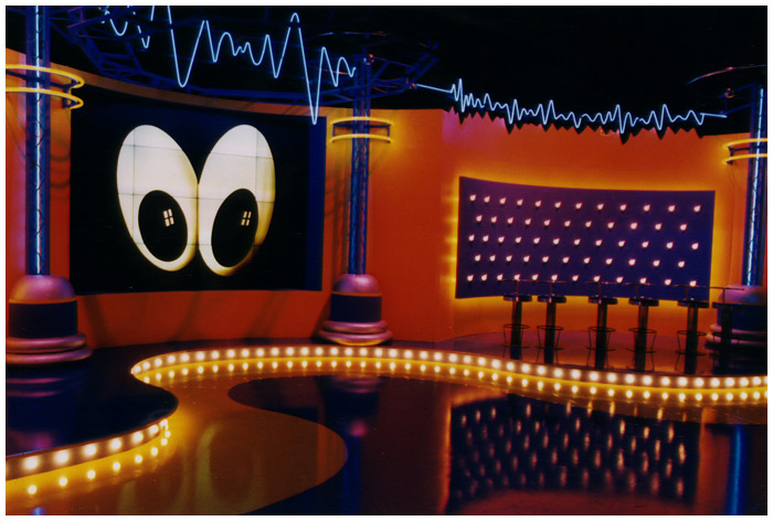 Shot at the TSW studios in Southampton this was a fun show. Basically a physical game show where contestants entered sit com style rooms behind the main set that where completely isolated from any light. BVS infrared cameras shot the antics of the ' blind ' contestants.