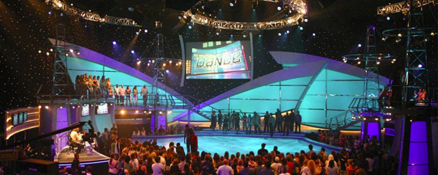 I HAVE DESIGNED ALL SEASONS OF THE HUGELY SUCCESSFUL SHOW SO YOU THINK YOU CAN DANCE FOR PRODUCERS DICK CLARK AND NIGEL LYTHGOE BROADCAST ON FOX. THE FIRST SET ( STILL EVERYONES FAVORITE ) WAS A PLAYGROUND OF LEVELS AND ' BOAT SAILS ' WITH AUDIENCE ALL AROUND THE SET EVEN UP ON THE BALCONIES. AFTER SEVERAL SEASON I DESIGNED A NEW STREAMLINED SET FIRST SEEN FOR THE KODAK THEATER GRAND FINALE SHOW AND THEN USED THROUGHOUT FOLLOWING SEASONS.