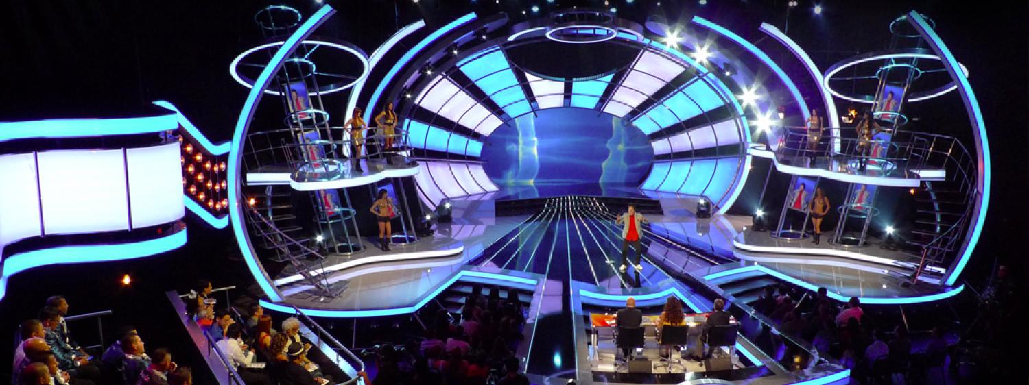 CHRISTMAS 2010 I WAS APPROACHED BY THE OWNERS OF LATIN NETWORK ESTRELLA TV TO DESIGN THEIR VERSION OF ' AMERICAS GOT TALENT ' I WAS TEMPTED WITH A HUGE BUDGET AND THE COMPANY PURCHASED A SOUND STAGE IN BURBANK SPECIALLY TO HOUSE THE SHOW. I WAS ABLE TO BRING IN MY CHOICE OF LIGHTING DIRECTOR AND STAGE CREW AND THE NETWORK OWNERS GAVE ME COMPLETE FREE REIGN AND TRUSTED ME WITH A MILLION DOLLARS OF THEIR MONEY. THIS IS WITHOUT DOUBT THE FIRST TIME IN MY CAREER THAT I HAVE HAD A GRAND BUDGET AND COMPLETE TRUST IN ME TO DO WHAT I DO. USUALLY THERE ARE ENDLESS BUDGET STRUGGLES, PERSONALITY CLASHES AND PRODUCERS MEDDLING WITH MY INITIAL DESIGNS UNTIL YOU SEE A WATERED DOWN SHADOW ON TV OF WHAT I INITIALLY CREATED.. MUCHO TALENTO IS PERHAPS THE SINGLE BEST REPRESENTATION OF MY CAPABILITIES IN THE TV INDUSTRY WHEN ACTUALLY TRUSTED.. I LOVE THIS SET.